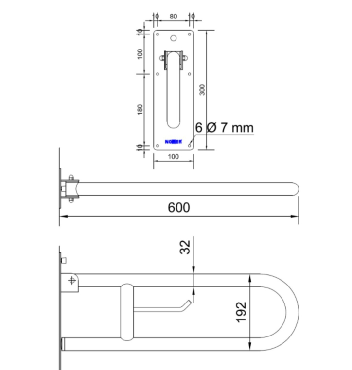 Опорный поручень NOFER 15051.60.S для оборудования санузлов для инвалидов, малоподвижных групп населения (МНГ), лиц с ограниченными возможностями, пожилых людей.