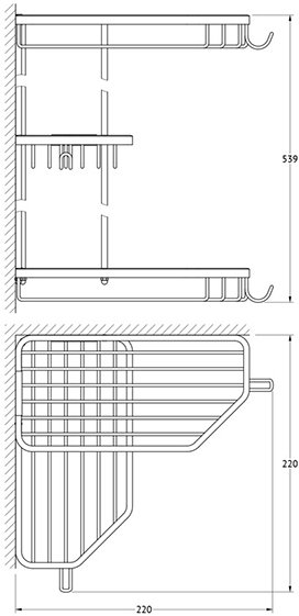 Полка угловая 3-х ярусная FBS Ryna RYN 014 с крючками