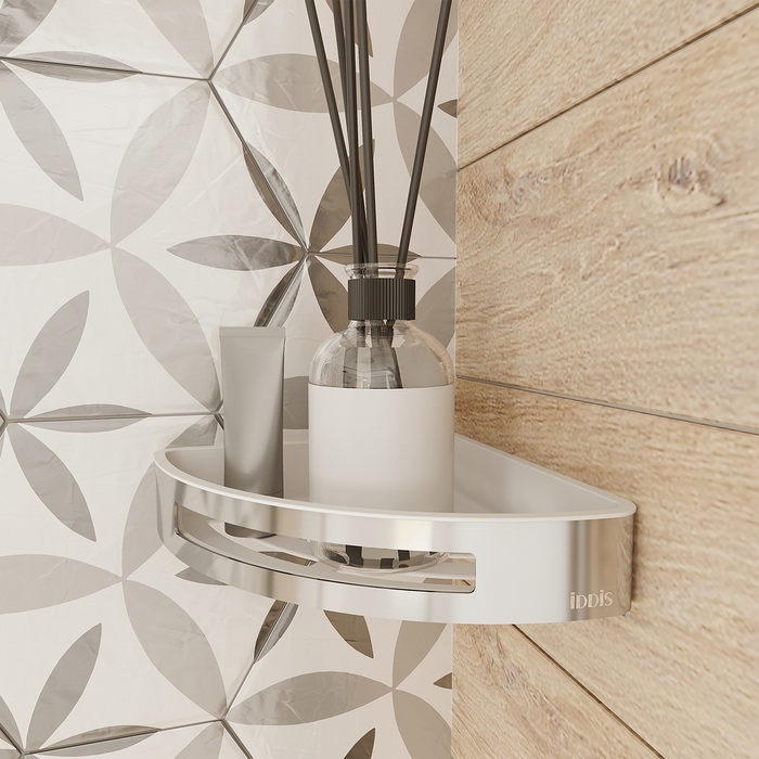Угловая полка для ванной комнаты вместит все необходимое для комфортного принятия душа. Размер 215х215 мм. Благодаря универсальному стилю подойдет для любой ванной комнаты.