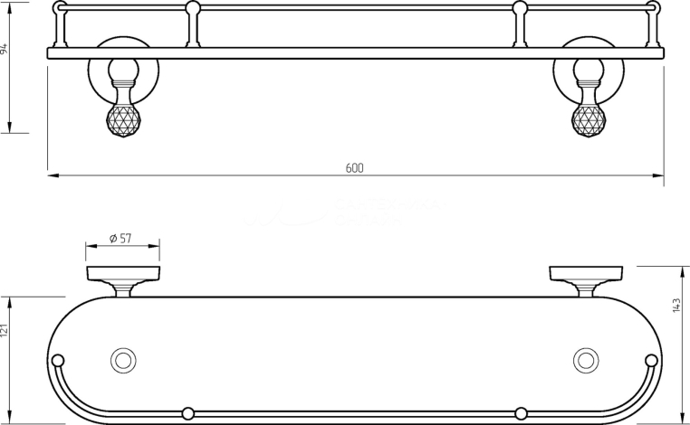Полка c галереей Migliore Amerida 16601 стекло/золото/Crystal L60 см