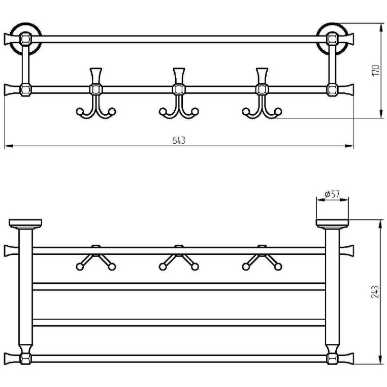Полка-держатель для полотенец серии FORTUNA бренда MIGLIORE - это удобный аксессуар для ванной комнаты или сауны. На полке можно хранить свежие полотенца и прочие предметы одежды. Крючки расположены на достаточном удалении друг от друга и вы сможете разместить на них большие полотенца и халаты.