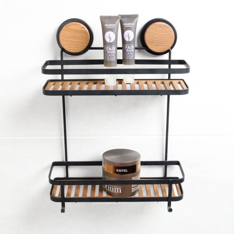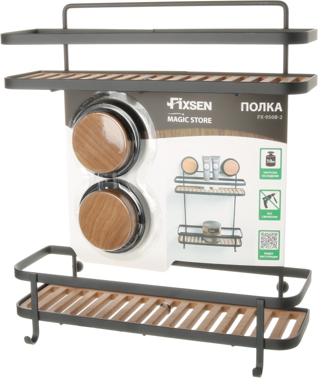 Полка Fixsen прямая двухэтажная черная-дерево Magic FX-950B-2