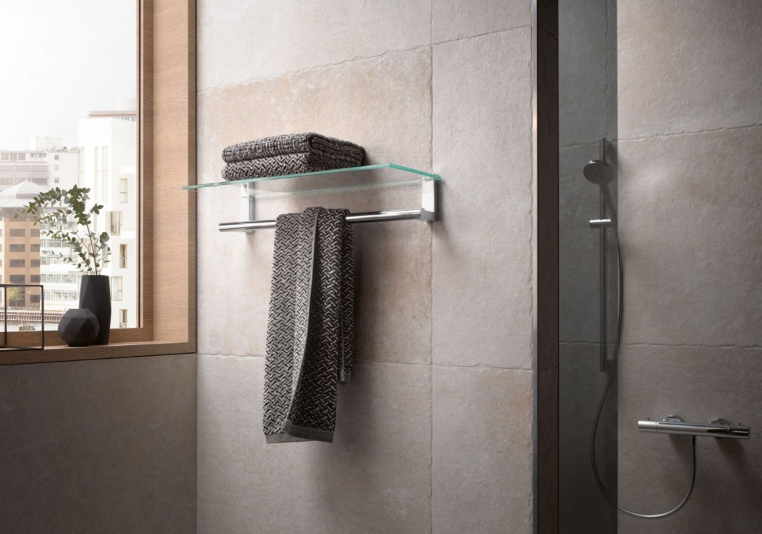 Полка для полотенец Keuco Plan 14975010000 с полочкой из ударопрочного безопасного стекла.