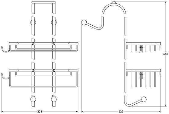 Полка 2-х ярусная FBS Ryna RYN 028 с крючками навесная