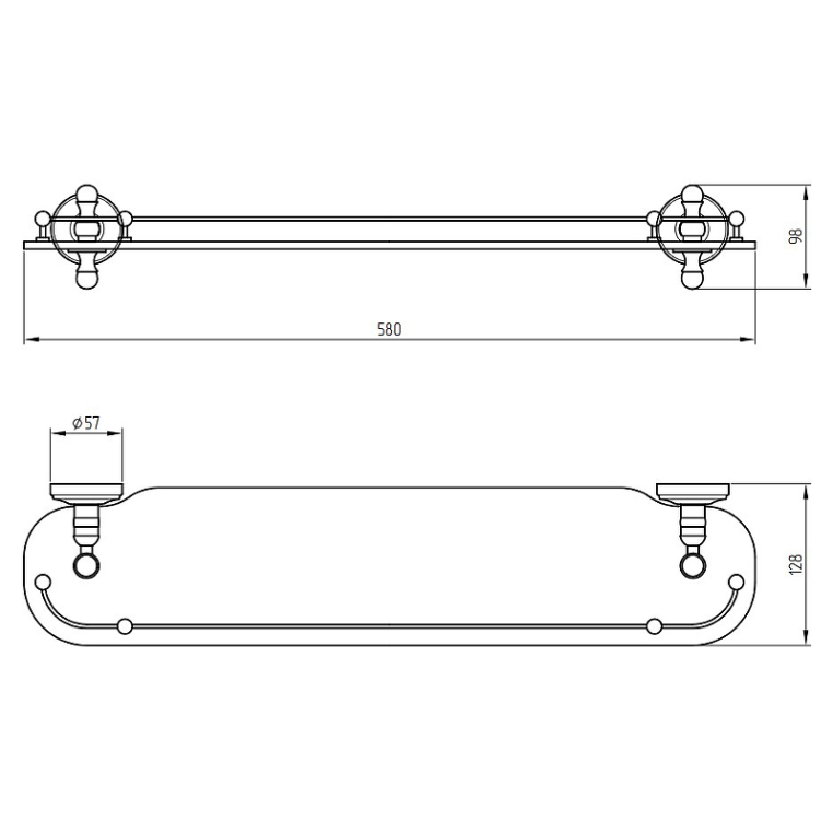 Полка с галереей серии MIRELLA бренда MIGLIORE длиной 58 см — это функциональный аксессуар для ванной комнаты в классическом стиле. Полка вешается над раковиной. На ней вы сможете разместить все необходимые вам косметические средства, которые будут всегда у вас под рукой. Ограничитель по переднему краю полки не позволит упасть тюбикам и предметам. Стекло легко чистится тряпочкой и/или средством для чистки стекол. Изделие выполнено из латуни и имеет высококачественное бронзовое покрытие, которое при правильном уходе надолго сохранит свой блеск.