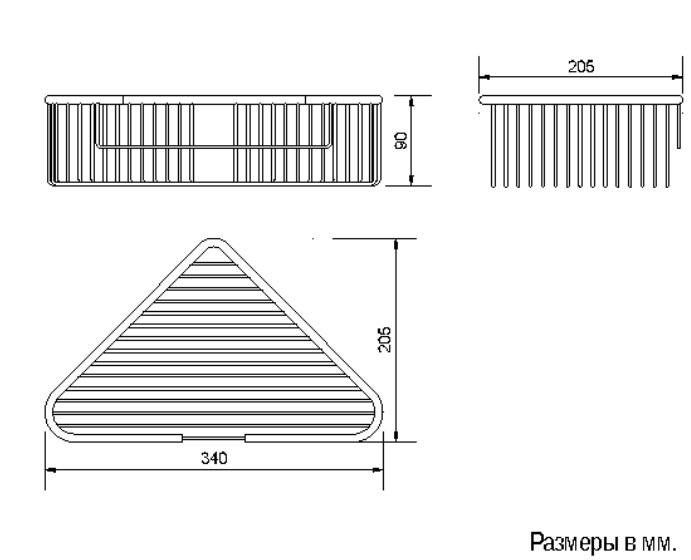 NOFER Niza 09053.BK Корзинка для душа угловая (черный). Полочка в сеточку треугольная из латуни.