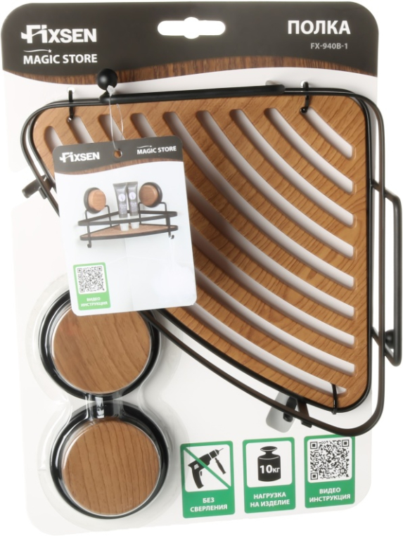 Полка Fixsen угловая одноэтажная черная-дерево Magic FX-940B-1