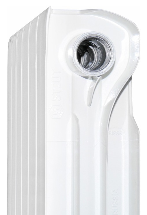Радиаторы STOUT VEGA собирают из отдельных секций, которые изготавливают из качественного алюминиевого сплава методом литья под давлением. Каждая секция представляет собой единый монолит из двух коллекторов и связывающего их оребрения, внутри которого проходит вертикальный канал овального сечения. Особая форма оребрения и канала обеспечивает высокие теплотехнические показатели радиатора и низкое гидравлическое сопротивление.