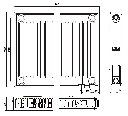 Тип радиатора (глубина): 12 (64 мм)