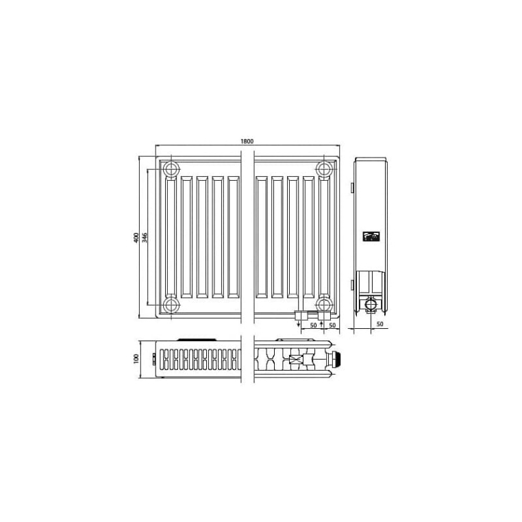 Стальной панельный радиатор KERMI Profil-V FTV тип 22 - 400x1800 мм, подключение нижнее правое, цвет белый