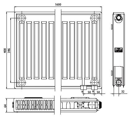 Тип радиатора (глубина): 12 (64 мм)