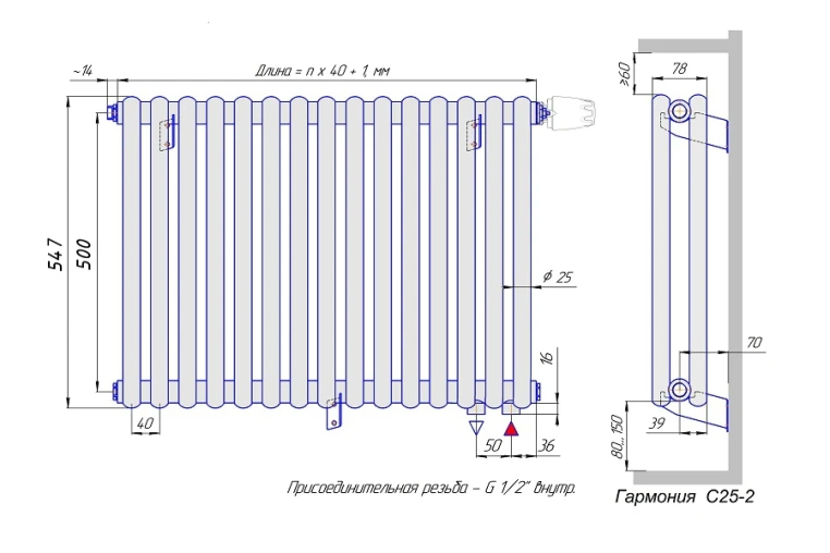 Стальной трубчатый радиатор КЗТО Гармония С25-2 500 / 34 секции с нижней подводкой (Гармония С25 2-500-34 нп)