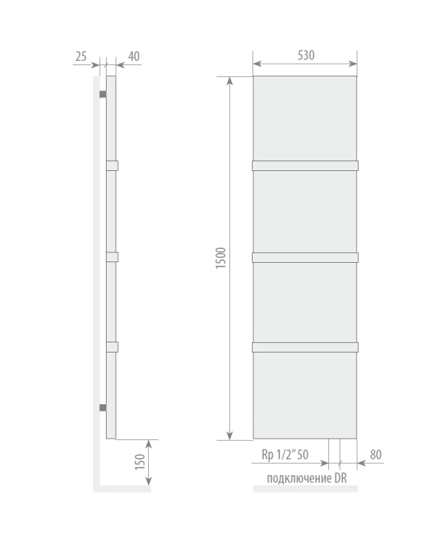 *Комплект настенных крепежей, установленных на корпусе радиатора - 4 шт.
