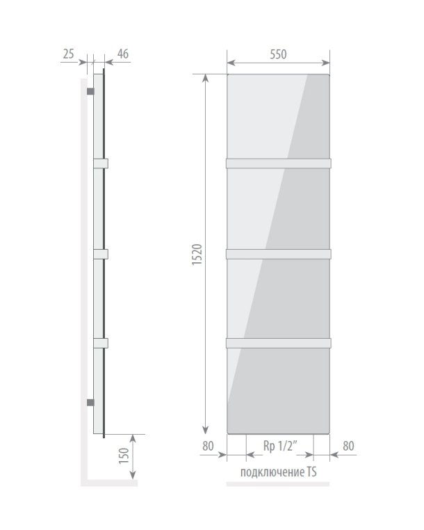 *Комплект настенных крепежей, установленных на корпусе радиатора - 4 шт.