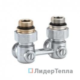 Проходной запорно-присоединительный узел "Multiflex F" для двухтрубных систем отопления из латуни, никелированный, мягкое уплотнение.