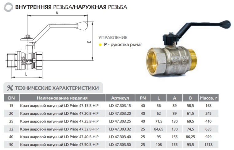 - Тип присоединения: резьба внутренняя B / наружная H латунная