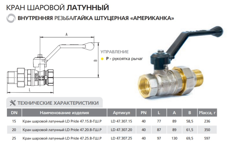 Кран шаровый LD Pride HB 3/4" полнопроходной рычаг с разъемным соединением предназначен для быстрого и многократного перекрытия потока на трубопроводах бытового использования систем холодного и горячего водоснабжения, а также отопления. Разъемное соединение позволяет создавать быстроразъемные гидравлические соединения для быстрого демонтажа / монтажа участка трубопровода. Относится к запорной арматуре и не предназначен для регулирования потока. Применяется в системах холодного и горячего водоснабжения, в том числе, питьевого, отопления, технологических трубопроводах. Корпус крана выполняется из латуни согласно ГОСТ 15527-2004. Корпусные детали, шаровая пробка покрыты никелем, что обеспечивает дополнительную коррозионную стойкость и долговечность. Ручка с монтажными проушинами изготовлена из алюминиевого сплава с полеуретановой порошковой окраской. Рабочей средой для крана являются вода, в том числе питьевая, нефтепродукты, горюче-смазочные материалы, природный газ, сжиженные углеводородные газы, неагрессивные газообразные среды и жидкости без содержания абразивных примесей. Максимальное рабочее давление крана составляет 40 бар, рабочий диапазон температуры: от -20 до +150 оС
