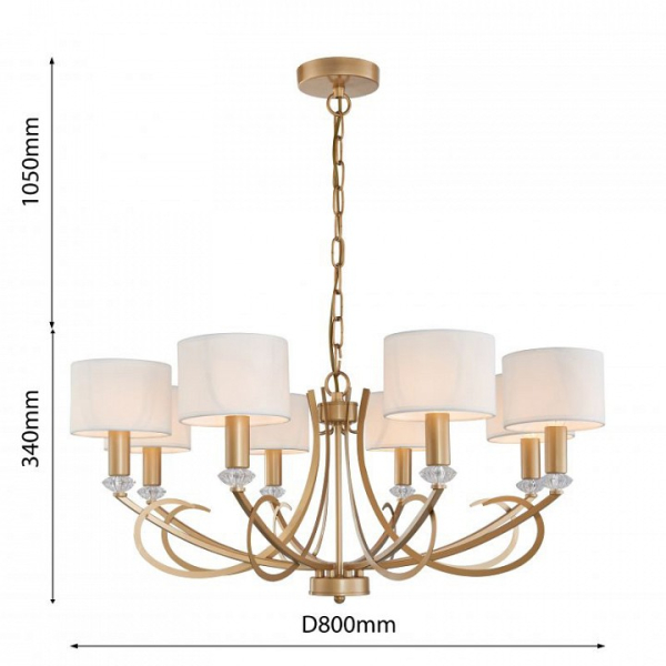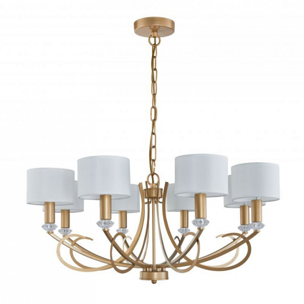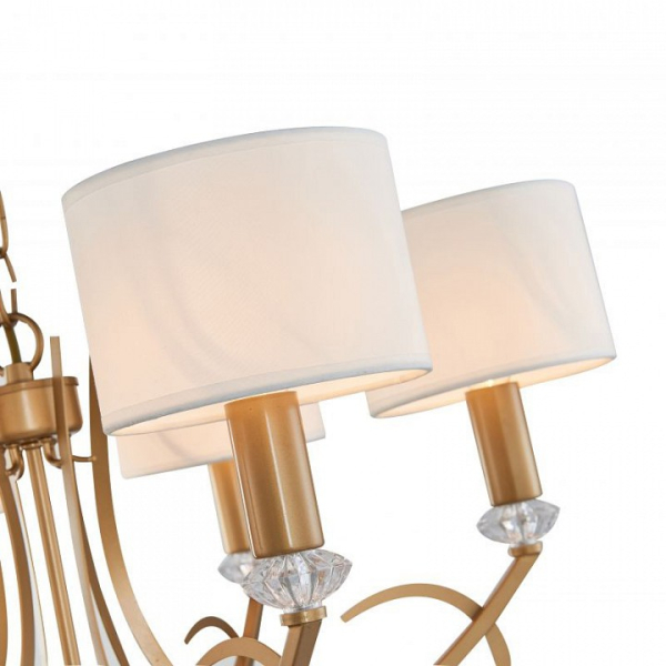 каркас цвета золотой, плафоны из белой ткани, декоративные элементы из прозрачного хрусталя