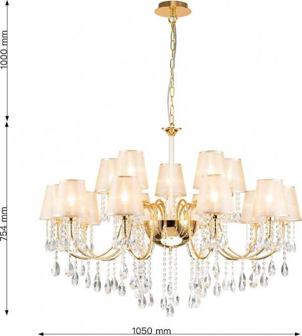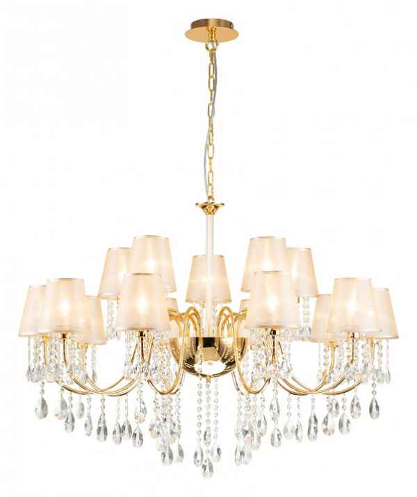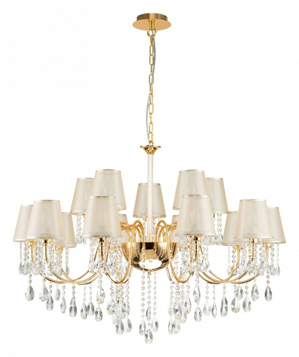 Изделие 2868-15P от немецкого бренда Favourite относится к коллекции Cutie и отлично подойдет для установки на потолок больших залов, оформленных в классическом стиле. Подвесная люстра Favourite Cutie 2868-15P с плафонами-конусами осветит помещение площадью 33.3 кв.м. Для устройства рекомендуется использовать лампы накаливания с цоколем E14 и мощностью 40 W. Основными материалами для производства используется текстиль, металл и ткань и может использоваться для натяжного потолка. Преимущественно представляется в цвете Янтарный и Золотой.