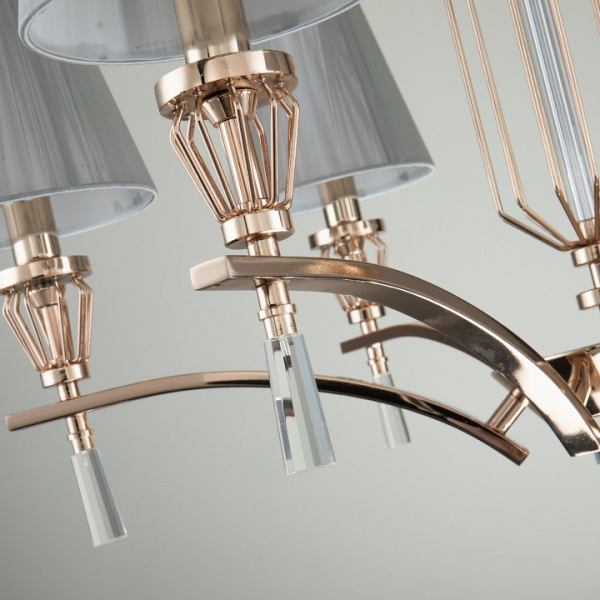 Изделие 2690-6P от немецкого бренда Favourite относится к коллекции Sade и отлично подойдет для установки на потолок в гостиной, оформленной в стиле арт-деко. Подвесная люстра Favourite Sade 2690-6P с плафонами-конусами осветит помещение площадью 13.3 кв.м. Для устройства рекомендуется использовать лампы накаливания с цоколем E14 и мощностью 40 W. Основными материалами для производства используется текстиль, металл и ткань и может использоваться для натяжного потолка. Преимущественно представляется в цвете Серый и Золотой.