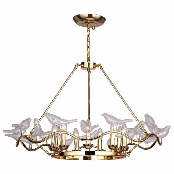 Изделие 1750-9P от немецкого бренда Favourite относится к коллекции Pajaritos Gold и отлично подойдет для установки на потолок в гостиной, оформленной в дизайнерском стиле. Подвесная люстра Favourite Pajaritos 1750-9P без плафонов осветит помещение площадью 20 кв.м. Для устройства рекомендуется использовать лампы накаливания с цоколем E14 и мощностью 40 W. Основным материалом для производства используется металл и может использоваться для натяжного потолка. Преимущественно представляется в цвете Прозрачный и Золотой.