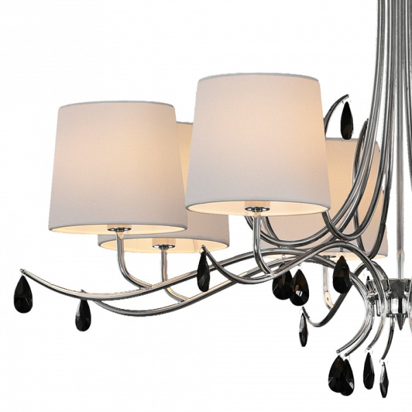 Изделие 6312 от испанского бренда Mantra относится к коллекции Andrea и отлично подойдет для установки на потолок в гостиной, оформленной в дизайнерском стиле. Подвесная люстра Mantra Andrea 6312 с плафонами-конусами осветит помещение площадью 32 кв.м. Для устройства рекомендуется использовать энергосберегающие лампы с цоколем E14 и мощностью 20 W. Основными материалами для производства используется текстиль, металл и ткань и может использоваться для натяжного потолка. Преимущественно представляется в цвете Белый и Серебристо-стальной.