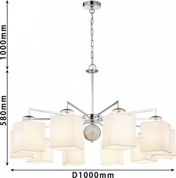Изделие 2821-10P от немецкого бренда Favourite относится к коллекции Diva и отлично подойдет для установки на потолок в гостиной, оформленной в американском стиле. Подвесная люстра Favourite Diva 2821-10P с квадратными плафонами осветит помещение площадью 22.2 кв.м. Для устройства рекомендуется использовать лампы накаливания с цоколем E14 и мощностью 40 W. Основными материалами для производства используется текстиль, металл и ткань и может использоваться для натяжного потолка. Преимущественно представляется в цвете Белый и Серебристо-стальной.