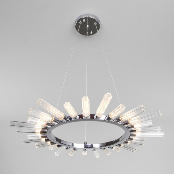 Изделие 558 от российского бренда Bogates относится к коллекции Sole и отлично подойдет для установки на потолок в гостиной, оформленной в дизайнерском стиле. Подвесная люстра Bogates Sole 558 с цилиндрическими плафонами осветит помещение площадью 4.5 кв.м. Для устройства рекомендуется использовать галогеновые лампы с цоколем G4 и мощностью 3 W. Основными материалами для производства используется стекло и металл и может использоваться для натяжного потолка. В комплект поставки входят также лампы. Преимущественно представляется в цвете Хромовый, Серебристо-стальной и Прозрачный.