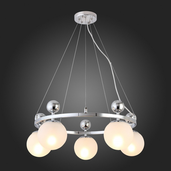 Изделие SLE106103-05 от итальянского бренда Evoluce относится к коллекции Pechio и отлично подойдет для установки на потолок в гостиной, оформленной в стиле модерн. Подвесная люстра Evoluce Pechio SLE106103-05 с плафонами в виде шаров осветит помещение площадью 16.7 кв. м. Для устройства рекомендуется использовать лампы накаливания с цоколем E27 и мощностью 60 W. Основными материалами для производства используется стекло и металл и может использоваться для натяжного потолка. Преимущественно представляется в цвете Хромовый, Серебристо-стальной и Белый.