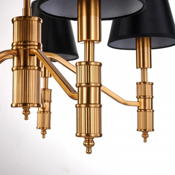 Изделие 2933-5P от немецкого бренда Favourite относится к коллекции Flagship и отлично подойдет для установки на потолок спальни, оформленной в стиле модерн. Подвесная люстра Favourite Flagship 2933-5P с плафонами-конусами осветит помещение площадью 10 кв.м. Для устройства рекомендуется использовать лампы накаливания с цоколем E14 и мощностью 40 W. Основными материалами для производства используется текстиль, металл и ткань и может использоваться для натяжного потолка. Преимущественно представляется в цвете Черный и Античная латунь.