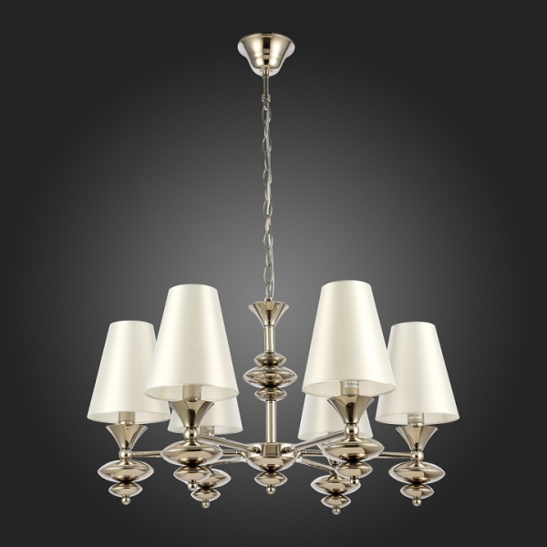 Изделие SL1137.103.06 от итальянского бренда Evoluce относится к коллекции Rionfo и отлично подойдет для установки на потолок спальни, оформленной в стиле арт-деко. Подвесная люстра Evoluce Rionfo SL1137.103.06 с плафонами-конусами осветит помещение площадью 13.3 кв.м. Для устройства рекомендуется использовать лампы накаливания с цоколем E14 и мощностью 40 W. Основными материалами для производства используется текстиль, металл и ткань и может использоваться для натяжного потолка. Преимущественно представляется в цвете Белый и Никелевый.