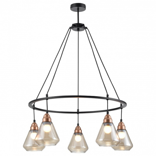 Изделие VL5842P05 от итальянского бренда Vele Luce относится к коллекции Norina и отлично подойдет для установки на низкий потолок в гостиной, оформленной в стиле модерн. Подвесная люстра Vele Luce Norina VL5842P05 с плафонами-конусами осветит помещение площадью 12 кв.м. Для устройства рекомендуется использовать лампы накаливания с цоколем E27 и мощностью 60 W. Основными материалами для производства используется металл и стекло и может использоваться для натяжного потолка. Преимущественно представляется в цвете Черный и Коньячный.