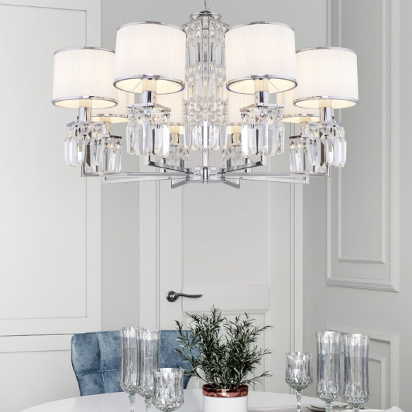 Подвесная люстра Eurosvet Zaffiro 10099/8 хром/прозрачный хрусталь Strotskis (новый абажур)