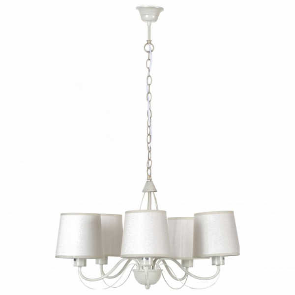 Изделие A9310LM-5WG от итальянского бренда Arte Lamp относится к коллекции Orlean и отлично подойдет для установки на потолок спальни, оформленной в стиле прованс. Подвесная люстра Arte Lamp Orlean A9310LM-5WG с плафонами-конусами осветит помещение площадью 11.1 кв.м. Для устройства рекомендуется использовать лампы накаливания с цоколем E27 и мощностью 40 W. Основными материалами для производства используется текстиль, металл и ткань и может использоваться для натяжного потолка. Преимущественно представляется в цвете Белый.