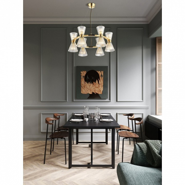 Изделие APL.801.03.12 от польского бренда Aployt относится к коллекции Elinor и отлично подойдет для установки на потолок кафе и ресторанов, оформленных в современном стиле. Подвесная люстра Aployt Elinor APL.801.03.12 с плафонами-конусами осветит помещение площадью 26.7 кв.м. Для устройства рекомендуется использовать лампы накаливания с цоколем E14 и мощностью 40 W. Основными материалами для производства используется стекло и металл и может использоваться для натяжного потолка. Преимущественно представляется в цвете Золотой и Прозрачный.