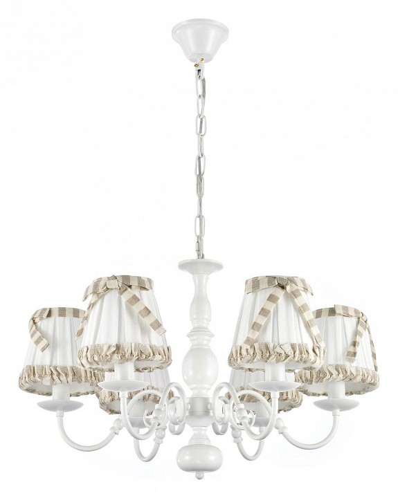 Изделие Formello E 1.1.6 W от итальянского бренда Arti Lampadari относится к коллекции Formello и отлично подойдет для установки на потолок в гостиной, оформленной в стиле прованс. Подвесная люстра Arti Lampadari Formello E 1.1.6 W с плафонами-конусами осветит помещение площадью 13.3 кв.м. Для устройства рекомендуется использовать лампы накаливания с цоколем E14 и мощностью 40 W. Основными материалами для производства используется текстиль, металл и ткань и может использоваться для натяжного потолка. Преимущественно представляется в цвете Белый.