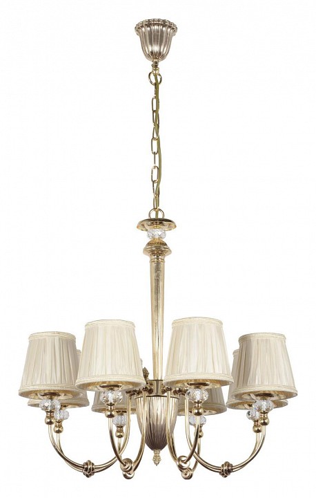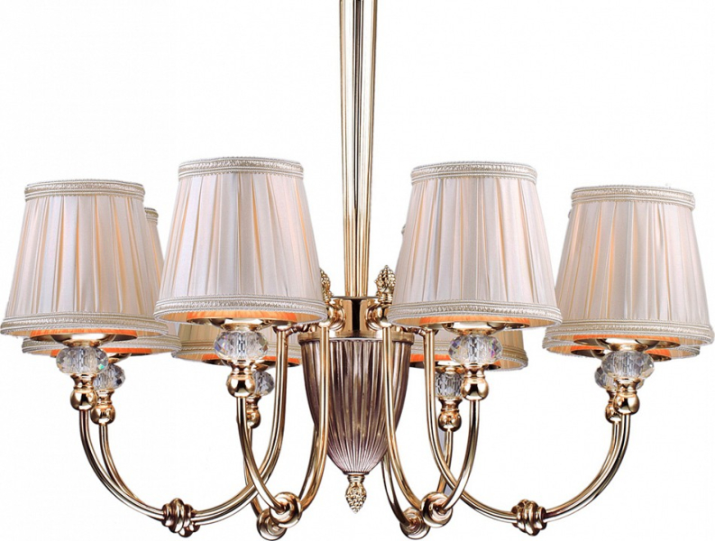 Изделие Roana E 1.1.8 CG от итальянского бренда Arti Lampadari относится к коллекции Roana CG и отлично подойдет для установки на потолок в гостиной, оформленной в стиле неоклассики. Подвесная люстра Arti Lampadari Roana E 1.1.8 CG с плафонами-конусами осветит помещение площадью 17.8 кв.м. Для устройства рекомендуется использовать лампы накаливания с цоколем E14 и мощностью 40 W. Основными материалами для производства используется текстиль, металл и ткань и может использоваться для натяжного потолка. Преимущественно представляется в цвете Кремовый и Золотой.