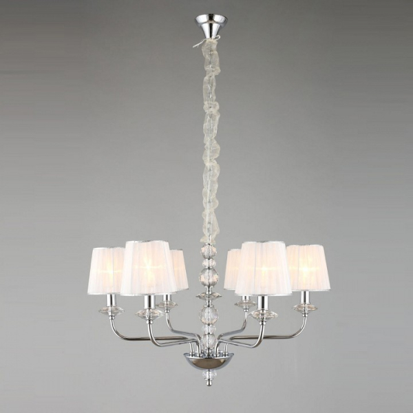 Изделие OML-84903-06 от итальянского бренда Omnilux относится к коллекции Camino и отлично подойдет для установки на потолок спальни, оформленной в классическом стиле. Подвесная люстра Omnilux Camino OML-84903-06 с плафонами-конусами осветит помещение площадью 12 кв.м. Для устройства рекомендуется использовать лампы накаливания с цоколем E14 и мощностью 40 W. Основными материалами для производства используется текстиль, металл и ткань и может использоваться для натяжного потолка. Преимущественно представляется в цвете Белый и Серебристо-стальной.