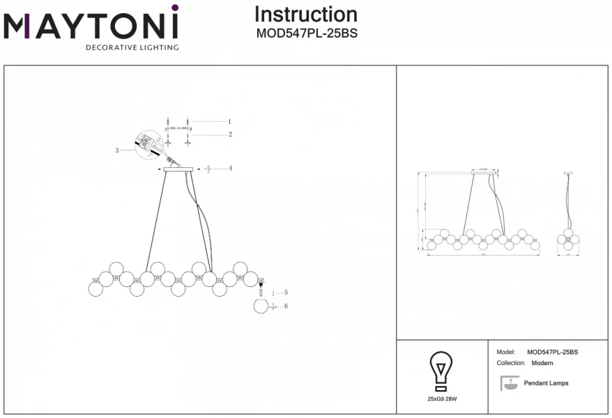 Изделие MOD547PL-25BS от немецкого бренда Maytoni относится к коллекции Modern и отлично подойдет для установки на потолок в гостиной, оформленной в стиле модерн. Подвесной светильник Maytoni Dallas MOD547PL-25BS с плафонами в виде шаров осветит помещение площадью 87.5 кв.м. Для устройства рекомендуется использовать галогеновые лампы с цоколем G9 и мощностью 28 W. Основными материалами для производства используется стекло и металл и может использоваться для натяжного потолка. Преимущественно представляется в цвете Золотой и Матовый белый.