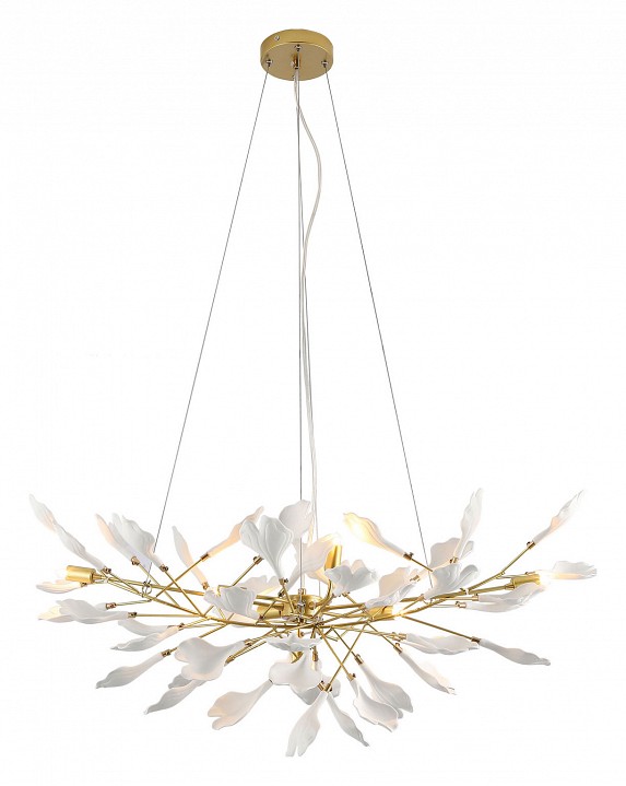 Изделие LSP-8549 от итальянского бренда Lussole и отлично подойдет для установки на потолок спальни, оформленной в стиле флористика. Подвесная люстра Lussole LSP-8549 с плафонами в форме цветов осветит помещение площадью 35 кв.м. Для устройства рекомендуется использовать галогеновые лампы с цоколем G9 и мощностью 40 W. Основными материалами для производства используется керамика и металл и может использоваться для натяжного потолка. Преимущественно представляется в цвете Белый и Золотой.
