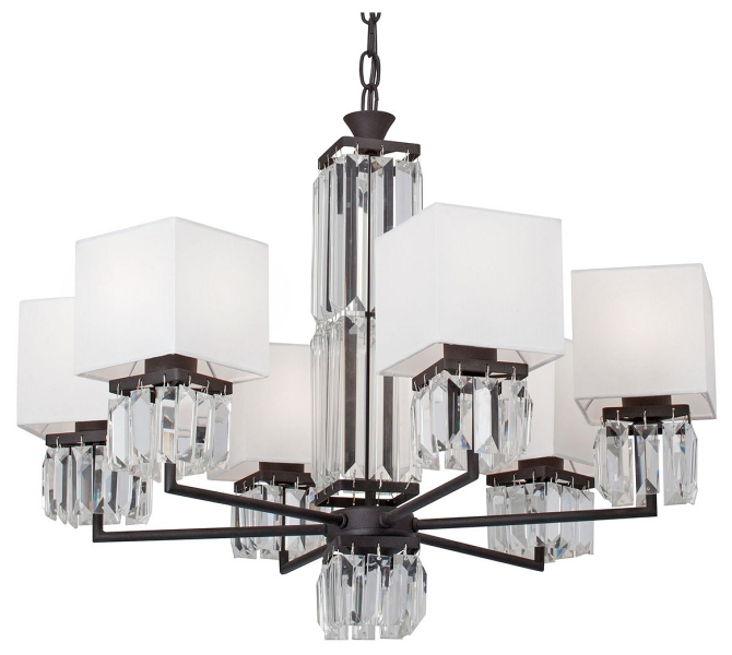 Изделие V1856-1/6 от российского бренда Vitaluce и отлично подойдет для установки на низкий потолок в гостиной, оформленной в стиле арт-деко. Подвесная люстра Vitaluce V1856-1/6 с квадратными плафонами осветит помещение площадью 18 кв.м. Для устройства рекомендуется использовать лампы накаливания с цоколем E14 и мощностью 40 W. Основными материалами для производства используется металл и ткань и может использоваться для натяжного потолка. Преимущественно представляется в цвете Черный и Белый.