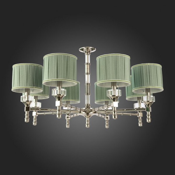 Изделие SL1121.103.08 от итальянского бренда ST Luce относится к коллекции Oleo и отлично подойдет для установки на потолок в гостиной, оформленной в дизайнерском стиле. Подвесная люстра ST Luce Oleo SL1121.103.08 с цилиндрическими плафонами осветит помещение площадью 17.8 кв. м. Для устройства рекомендуется использовать лампы накаливания с цоколем E14 и мощностью 40 W. Основными материалами для производства используется текстиль, металл и ткань и может использоваться для натяжного потолка. Преимущественно представляется в цвете Зеленый и Никелевый.