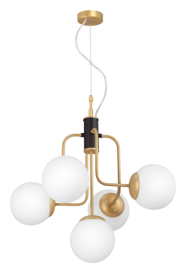 Изделие V3999-8/5S от российского бренда Vitaluce и отлично подойдет для установки на низкий потолок в гостиной, оформленной в стиле арт-деко. Подвесной светильник Vitaluce V3999-8/5S с плафонами в виде шаров осветит помещение площадью 15 кв. м. Для устройства рекомендуется использовать лампы накаливания с цоколем E14 и мощностью 40 W. Основными материалами для производства используется металл и стекло и может использоваться для натяжного потолка. Преимущественно представляется в цвете Золотой и Белый.