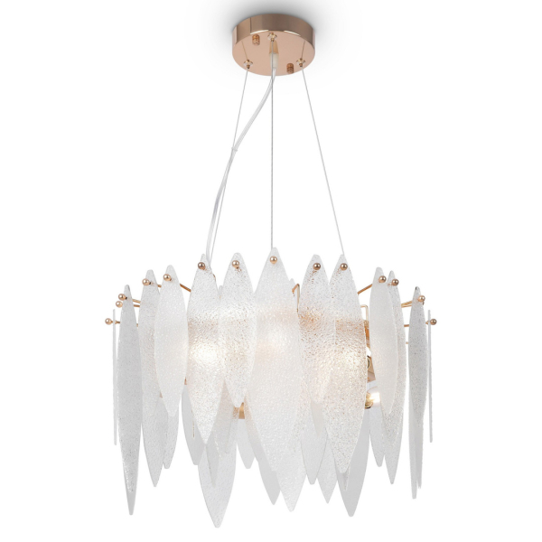 Изделие FR5217PL-05FG от немецкого бренда Freya относится к коллекции Lucrecia и отлично подойдет для установки на потолок спальни, оформленной в стиле модерн. Подвесной светильник Freya Lucrecia FR5217PL-05FG с плафонами в форме цветов осветит помещение площадью 20 кв. м. Для устройства рекомендуется использовать лампы накаливания с цоколем E14 и мощностью 60 W. Основными материалами для производства используется стекло и металл и может использоваться для натяжного потолка. Преимущественно представляется в цвете Золотой и Прозрачный.