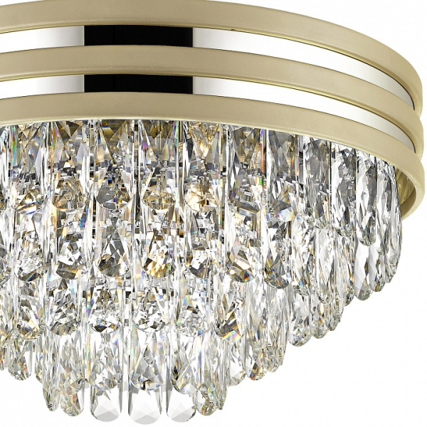 Потолочный светильник из металла цвета золото, нержавеющая сталь, с хрустальными подвесками. D460mm x H270mm, 5хЕ27
