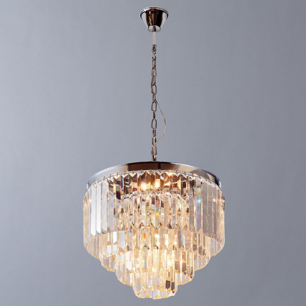 Изделие 3001/02 LM-9 от итальянского бренда Divinare относится к коллекции Nova и отлично подойдет для установки на потолок в гостиной, оформленной в современном стиле. Подвесная люстра Divinare Nova 3001/02 LM-9 с декоративными плафонами осветит помещение площадью 24 кв.м. Для устройства рекомендуется использовать лампы накаливания с цоколем E14 и мощностью 40 W. Основными материалами для производства используется хрусталь и металл и может использоваться для натяжного потолка. Преимущественно представляется в цвете Хромовый, Серебристо-стальной и Прозрачный.