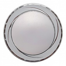 Форма плафона круг выпуклый, цвет плафона белый, цвет арматуры белый с серым рисунком. Лампы в комплекте: отсутствуют. Светильник имеет хорошую защиту от влаги и пыли — IP44. Способен выдержать удар гайки или болта и не боится брызг воды с любого направления. Можно смело устанавливать в ванной и в помещениях повышеной влажности.