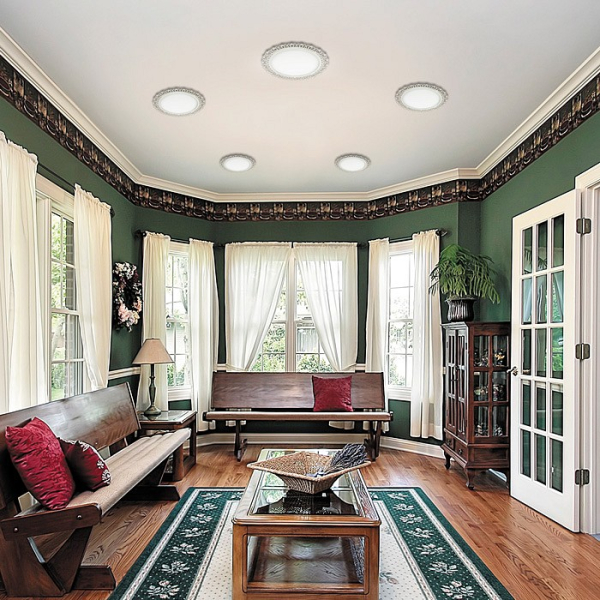 Форма плафона круг плоский, цвет плафона белый, цвет арматуры белый. Лампы в комплекте: светодиодная [LED]. Светильник имеет слабую защиту от влаги и пыли — IP20 и предназначен для использования в домашних интерьерах с умеренной влажностью.