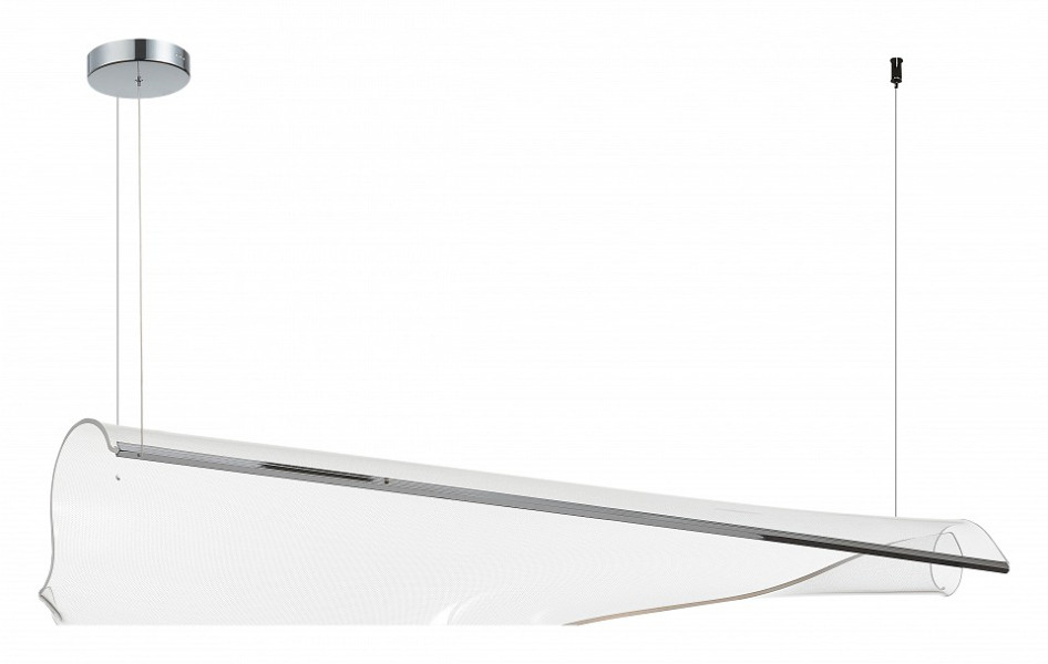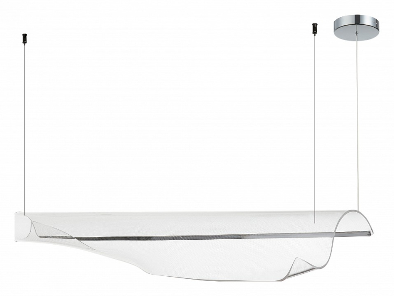 Горизонтальный подвесной светильник из металла цвета хром и акрила. Источник света LED 3000К 40W, L130mm x W300 x H500-1500mm
