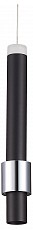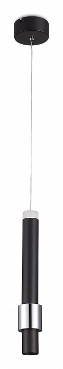 Подвес из металла черного цвета с декоративным акриловым кольцом сверху и хромовым внизу. Источник света LED 1х6W. D90mm, H403-1500mm